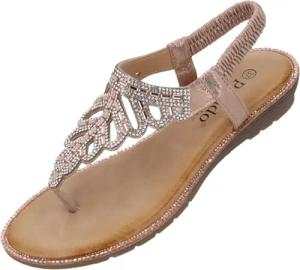Sandalen Damen Phuza by Sila Sahin - elegante Sandalen mit Glitzersteinen - modische Sommerschuhe - bequeme Pantoletten Rosegold UK8 - EU41