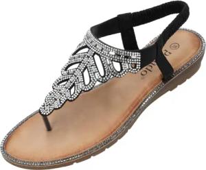 Sandalen Damen Phuza by Sila Sahin - elegante Sandalen mit Glitzersteinen - modische Sommerschuhe - bequeme Pantoletten Schwarz UK4,5 - EU37