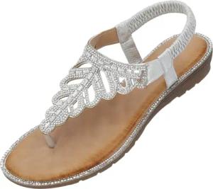 Sandalen Damen Phuza by Sila Sahin - elegante Sandalen mit Glitzersteinen - modische Sommerschuhe - bequeme Pantoletten Silber UK6 - EU39