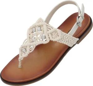 Sandalen Damen Jurte by Sila Sahin - modische Pantoletten - elegante Sommerschuhe - bequeme Sandaletten mit verstellbaren Riemen Weiß UK7 - EU40