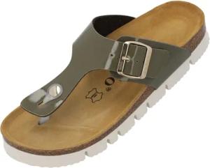 Zehentrenner Damen Kos PL Lack – gefertigt in Spanien – Plateau-EVA-Sohle – glänzende Lackoptik – angenehmes Weichfußbett – Veloursleder-Decksohle Khaki UK3,5 - EU36