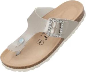 Zehentrenner Damen Kos SQ by Sila Sahin – gefertigt in Spanien – edle Glitzerschnalle – weiches Veloursleder-Fußbett – glamouröser Look Weiß Metallic UK3,5 - EU36