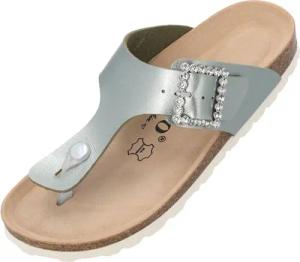 Zehentrenner Damen Kos SQ by Sila Sahin – gefertigt in Spanien – edle Glitzerschnalle – weiches Veloursleder-Fußbett – glamouröser Look Grau Metallic UK8 - EU41