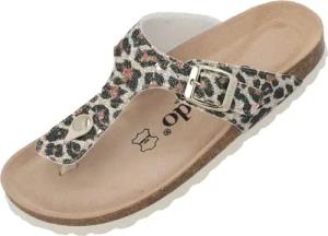 Zehentrenner Damen Kos Wild – gefertigt in Spanien – auffällige Tiermuster – Decksohle aus Veloursleder – komfortables Weichfußbett – EVA-Sohle Gold Leo/Beige UK6 - EU39