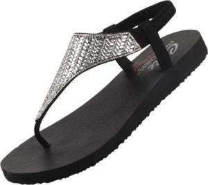 Meditation Glamorous Muse Damen Zehentrenner Schwarz/Silber EU 36