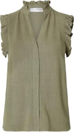 Selected Damen Hemd Bluse Legere Sommer Tunika Canvas Shirt Langarm Oberteil, Farben:Grün, Größe:36
