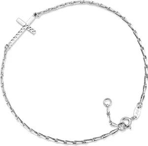 Fußkette Erbse 1,3mm Breite mit eingehängtem Kreuz - echt 925 Silber, verfügbar in vielen Längen