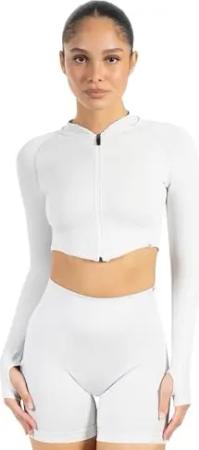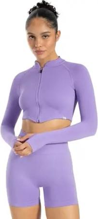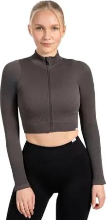 Crop Jacke Damen Harly, Seamless Trainingsjacke mit Stehkragen, Reißverschluss & Daumenlöchern, ideal für Sport, Warm-up, Freizeit, Layering, Yoga, Training & moderne Activewear