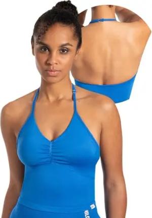 Sport BH Damen Azura, Nahtloses & Rückenfreies Crop Top, Neckholder Sport Bra mit Starken Halt und Kompressionsgefühl, Yoga Tank Top, Sportunterwäsche für Fitness, Gym, Alltag & Pilates