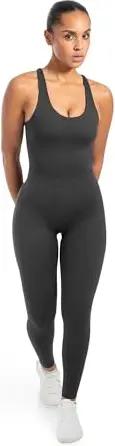 Jumpsuit Damen Ilva, ärmelloser Einteiler lang, Overall mit Shaped Fit & Rundhals, atmungsaktiver & elastischer Sportanzug, Ganzkörperanzug ideal für Sport, Fitness & Freizeit
