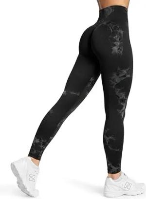 Leggings Damen Yune, Scrunch und Batik Optik mit Seamless Naht und Kontur, Fitness Hose, elastisch, Blickdicht, optimal für Gym, Yoga und Pilates, komfortabel und stylisch