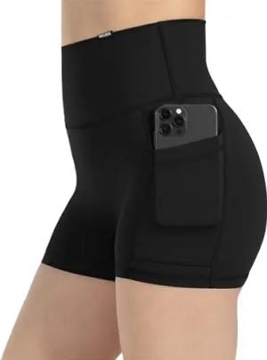 Shorts Damen Lissa, High Waist Radlerhose mit figurformendem Bund & seitlichen Eingrifftaschen, Training Shorts elastisch & enganliegend, ideal für Training, Alltag, Fitness & Yoga