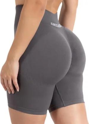 Sport Shorts Damen Amaze Pro, Seamless Blickdichte Radlerhose, Unsichtbarer Scrunch-Effekt, V-Shape High Waist Kurze Sporthose Biker Shorts Yoga Fitness Gym, Größe:XS, Color:Anthrazit Melange