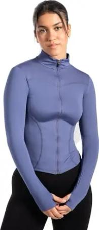 Sportjacke Damen Kenna, Laufjacke mit Stehkragen, Sport Oberteil mit tailliertem Schnitt & Daumenlöchern, Körperbetonte Sportjacke, Fitness Oberteil ideal für Freizeit, Sport, Laufen & Yoga