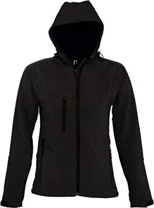 Damen Replay Softshell-Jacke mit Kapuze, atmungsaktiv, winddicht, wasserabweisend S,Schwarz