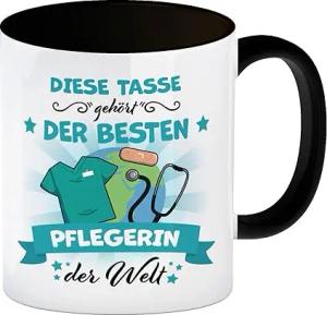 Beste Pflegerin der Welt Kaffeebecher Schwarz