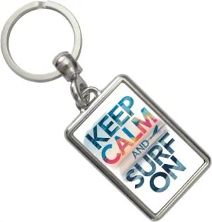 Surfer auf Welle Keep Calm and surf on Schlüsselanhänger mit Bordüre Surf-Spruch für Wassersport-Enthusiasten