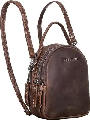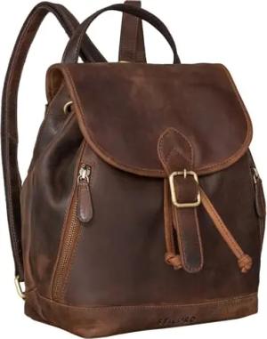 'Stacy' Rucksack Handtasche Damen Klein Mini Daypack Lederrucksack Vintage Backpack aus Leder für City Ausgehen Shopping Frauen Tagesrucksack Echtleder, Farbe:torres - braun