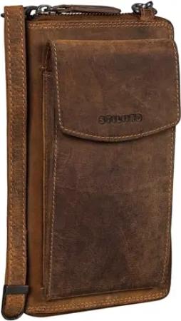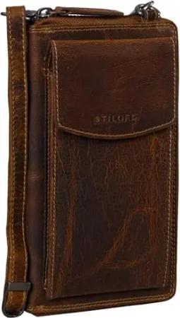 Damen Umhänge Geldbeutel aus Leder mit Handyfach - 2 in 1 Geldbörse Handytasche zum Umhängen - Crossbody Portemonnaie für Frauen 'Sarah' Echtleder groß, Farbe:luino - braun