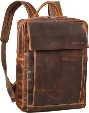 'Watson' Laptop Rucksack 15.6 Zoll Leder Backpack Business Lederrucksack Herren Rucksack XL für Breite DIN A4 Ordner Tagesrucksack Vintage Echtleder, Farbe:maraska - braun