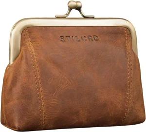 Goldie Vintage Kiss-Lock Münzbeutel Kleines Portemonnaie Damen Leder Geldbeutel klein Damen Echtleder Antik Spangenportemonnaie Geldbörse mit Clipverschluss Farbe:mittel - braun