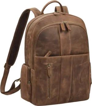 Rio Premium Lederrucksack für Herren Arbeitsrucksack mit Laptopfach 15.6 Zoll Groß Laptoprucksack Männer Rucksack Leder für Arbeit Büro Reise Uni aus Echtleder Farbe:Kreta - braun
