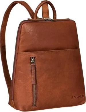 'Aubrey' Damen Tagesrucksack Leder Vintage Daypack für 10,9 Zoll Tablet Kleiner Cityrucksack Frauen Lederrucksack Elegant und Modern Echtleder, Farbe:kara - cognac