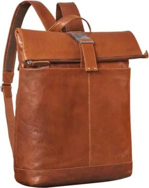 'Hudson' Vintage Rolltop Rucksack Leder mit Laptopfach 13,3 Zoll, Fahrradrucksack Kurierrucksack für Damen und Herren, Farbe:maraska - braun