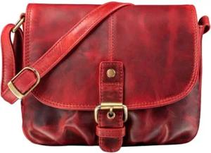 'Iris' Leder Handtasche Damen klein Vintage - Umhängetasche für Freizeit, Ausgehen & Party - Echtleder Abendtasche mit Fächern, Farbe:kara - rot