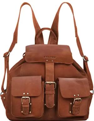 Larissa Großer Echt Leder Rucksack im Vintage Look - Stilsicher Unterwegs Sein Farbe:Kara - Cognac