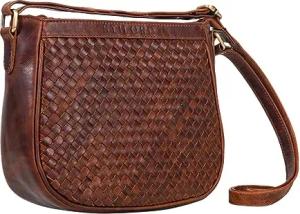 'Madita' Kleine Damen Handtasche Leder Vintage Schultertasche für Frauen geflochtene Umhängetasche für Freizeit Ausgehen City Party Echtleder, Farbe:porto - cognac