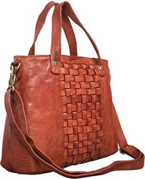 Mara Elegante Handtasche geflochtenes Leder mit abnehmbaren Schulterriemen Shopper Tasche Abendtasche Ausgehtasche für Damen Echtleder mittel-groß Farbe:Cognac - Used