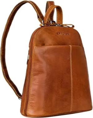 'Fabienne' Kleiner Vintage Damen Rucksack Echtleder Cognac mit vielen Fächern und Diebstahlsicher - ideal als Tagesrucksack Daypack Freizeitrucksack und Cityrucksack