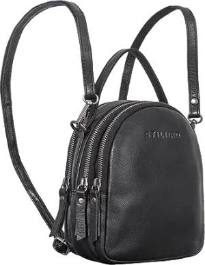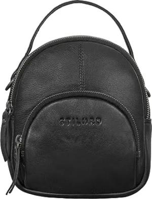 'Stacy' Rucksack Handtasche Damen Klein Mini Daypack Lederrucksack Vintage Backpack aus Leder für City Ausgehen Shopping Frauen Tagesrucksack Echtleder, Farbe:schwarz