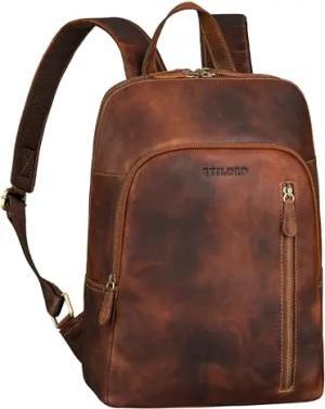 'Brad' Leder Laptoprucksack 15,6 Zoll Vintage Business Rucksack Herren Damen Lederrucksack Groß für Arbeit Büro Reisen Hochwertiger Moderner Daypack Echtleder, Farbe:luino - braun
