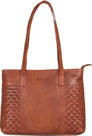 "Verena Echt-Leder Shopper Damen Schultertasche Flecht-Optik mit langen Henkel Handtasche Umhänge-Tasche für Schule Arbeit Shopping Vintage Tote Bag Echtleder Farbe:arona - braun