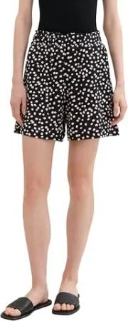 Damen Basic Stoff-Shorts, black flower minimal print, XXL