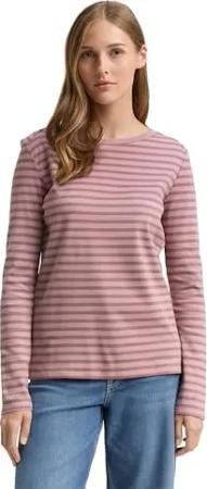 Damen 1012686 Streifen T-Shirt Mit Herz-Stickerei Auf Der Brust, 19022 - Dark Grey Rose Stripe, L EU