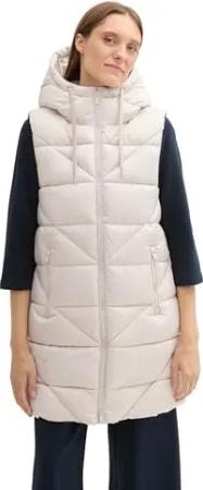 Damen Longstyle Steppweste,12365 - Dusty Beige, XL