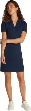 Damen Polokleid Slim Fit V-Neck Kurz, Blau (Dark Night Navy), XXS