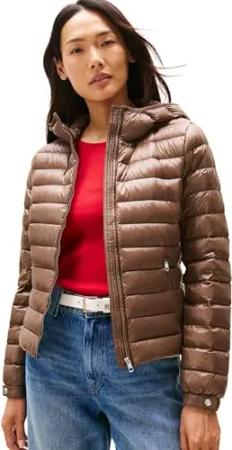 Damen Steppjacke Padded Nylon Slim Quilted mit Spitzkragen, Braun (Hickory), XL