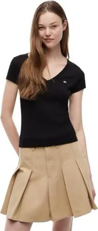 Damen T-Shirt Kurzarm Slim Essential Rib V-Ausschnitt, Blau (Sweet Blue), XXS