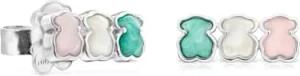 Ohrringe aus Sterlingsilber für Damen mit 3 Bärenmuster aus Quarzit, Perlmutt und Amazonit 1,2 cm und Druckknopfverschluss, vielseitig und elegant, Mini Color Kollektion