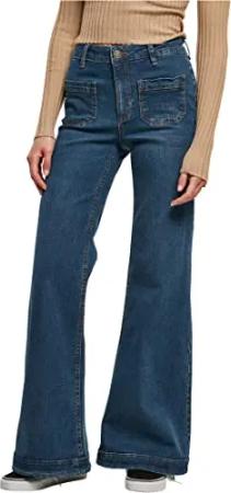Damen Hose Ladies Vintage Flared Denim Pants Deepblue Washed 34