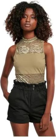 Damen Ladies Cropped Cold Shoulder Smoke Top Top, per Pack Grün (Olive 00176), Large (Herstellergröße: L)