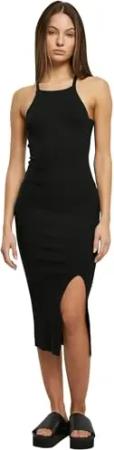Damen Ladies Midi Rib Knit Crossed Back Dress Kleid, Black, XXL