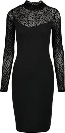 Ladies Flock Lace Turtle Neck Dress Black XS
