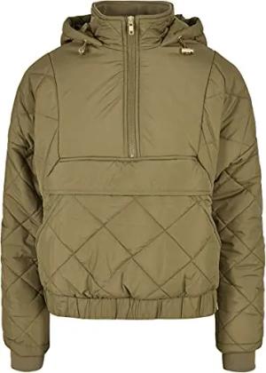 Ladies Oversized Diament Quilted Pull Over Jacket Frauen Übergangsjacke oliv S