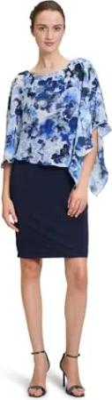 Damen Cocktailkleid mit Wasserfallausschnitt Blue Stone,44