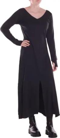 Alternative Bekleidung - Damen Kleid Knielang aus Baumwolle - V-Ausschnitt, Daumenlöcher, einfarbig, weich und bequem schwarz 42-44